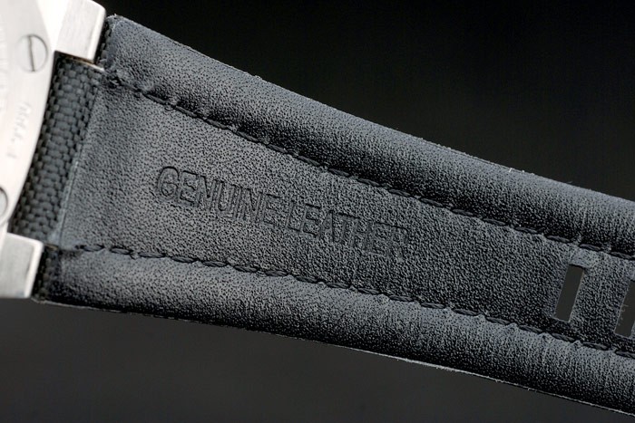 Armbånd: Sort Fabric Lined Audemars Piguet Heat Præget læderrem med logo indgraveret børstet rustfrit stål Hook-Clasp