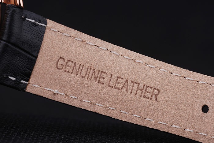 Armbånd: Sort Crocodile Læderrem med hvidt trådsting og varmeprægede Audemars Piguetnavn og logo og et Audemars Piguet Indskrevet 18k Rose-Gold Plated Flip-Over Hook Clasp