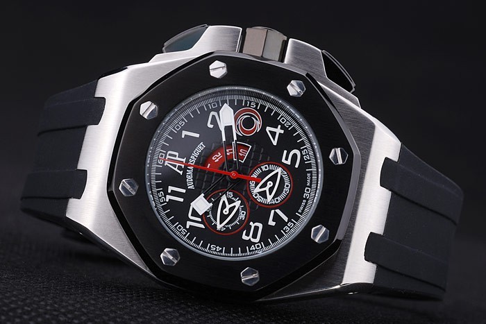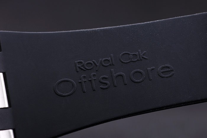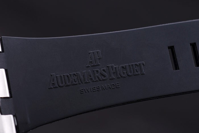 Armbånd: Sort Gummirem med varmeprægede Audemars Piguet Royal Oak Offshore Stempel og et Audemars Piguet Indskrevet ionbelagt krogspændelås
