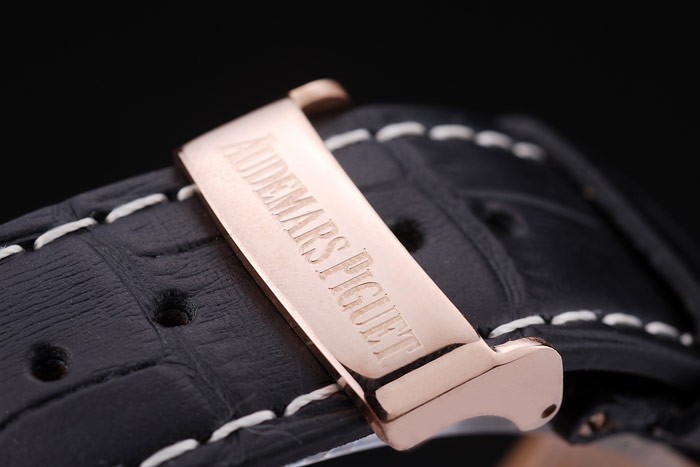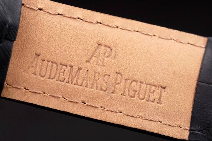 Armbånd: Varmeprægede Audemarer Piguet Black Crocodile Læderrem med Audemars Piguet Graveret Rustfrit Stål Fold-in Clasp