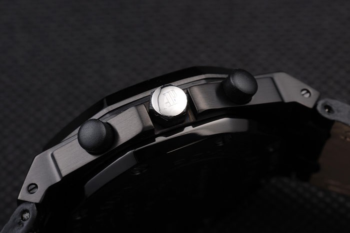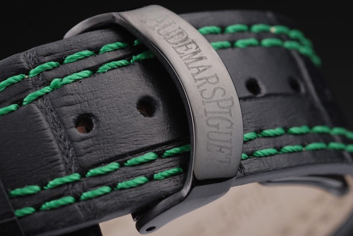 armbånd: varmeprægede audemars piguet sort krokodille læderrem med dobbeltsting og grønne audemarer Piguet indgraveret ionbelagt fold-in lås