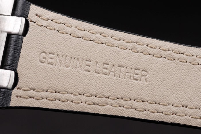 Armbånd: Varmeprægede Audemarer Piguet Sort Krokodille Læderrem med dobbelt rødsting og Audemarer Piguet Graveret Børstet rustfrit stål Fold-in Clasp