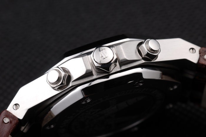 Crown: Rustfrit stål beskyttet hexagonal krone med initialerne AP og en mindre krone på begge sider af den