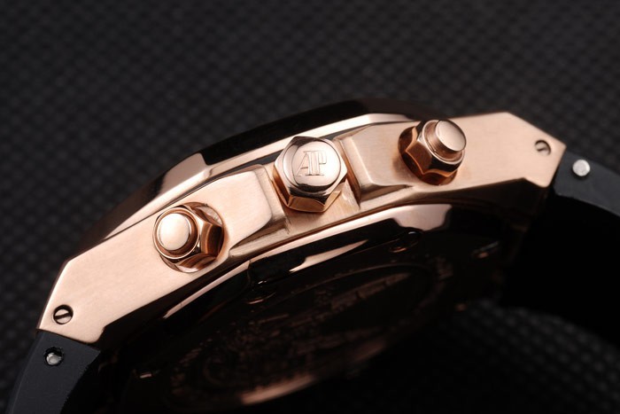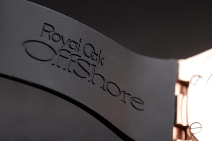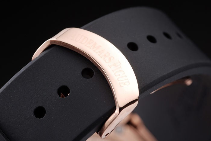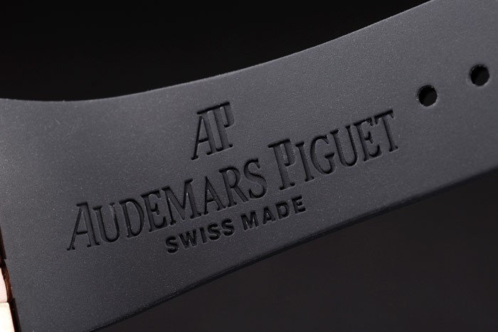 Armbånd: Audemars Piguet Royal Oak Offshore Prægede Sort Gummi Rem med Audemars Piguet Graveret Rose-Guld Fold-In Clasp