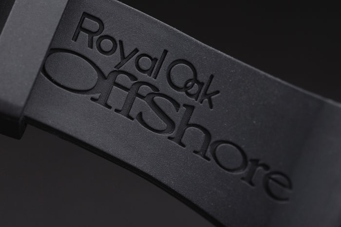Armbånd: Audemars Piguet Royal Oak Offshore Embossed Sort Gummirem med Audemars Piguet Graveret ionbelagt fold-in Clasp