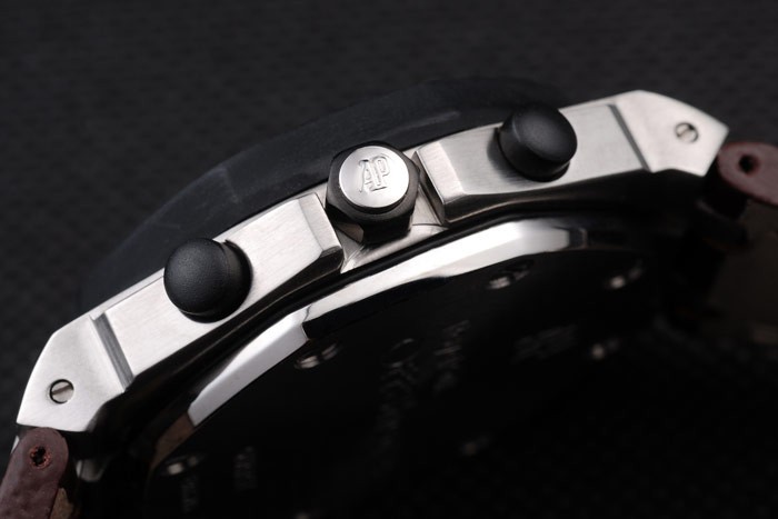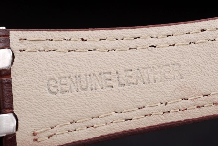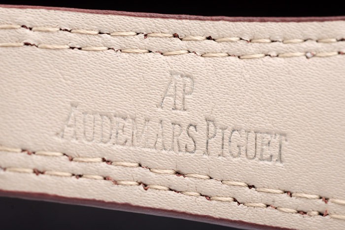 Armbånd: Varmeprægede Audemarer Piguet Brun Krokodille Læderrem med dobbelt hvid Sting og Audemarer Piguet Graveret Rustfrit stål Fold-in Clasp