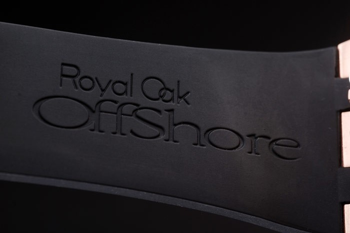 Armbånd: Audemars Piguet Royal Oak Offshore Prægede Sort Gummi Rem med Audemarer Piguet Graveret Rose-Guld Fold-In Clasp