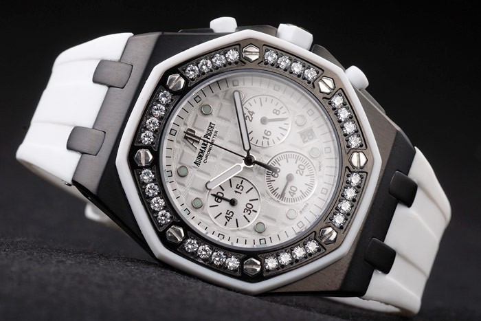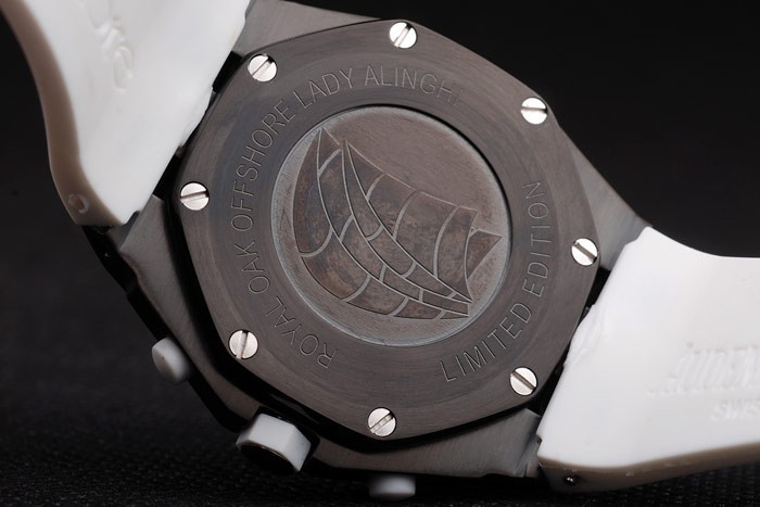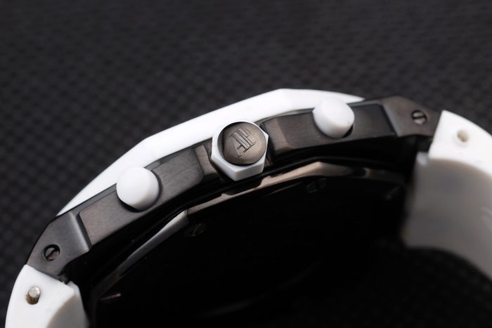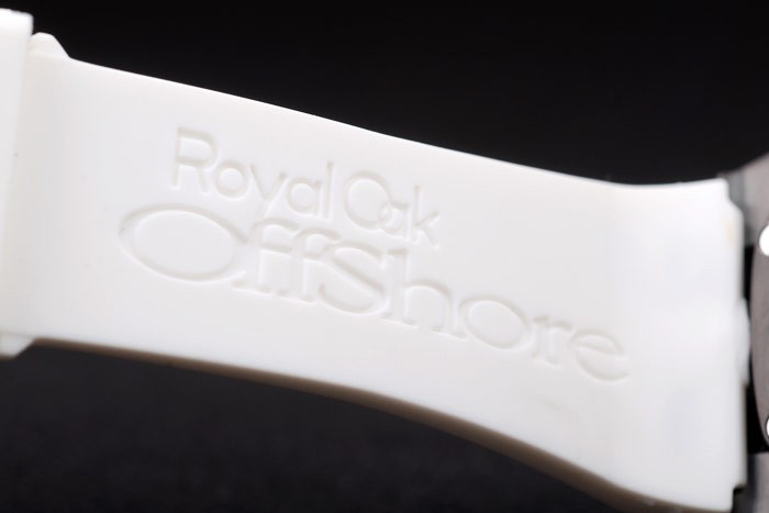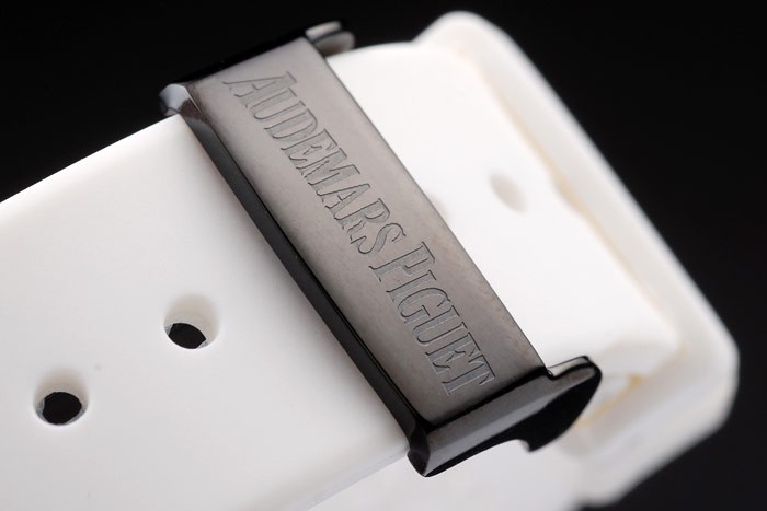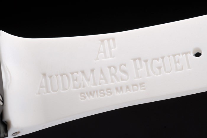 armbånd: Audemars Piguet Royal Oak Offshore Embossed White Gummi Rem med Audemars Piguet Graveret ionbelagt fold-in Clasp