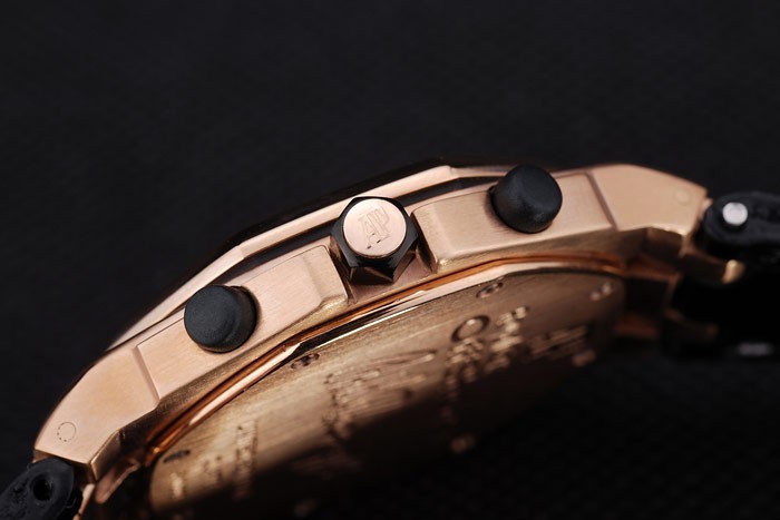 Crown : Rose-forgyldte Audemars Piguet logo indgraveret ionbelagt cutwork krone med to små ionbelagte kroner på begge sider af det