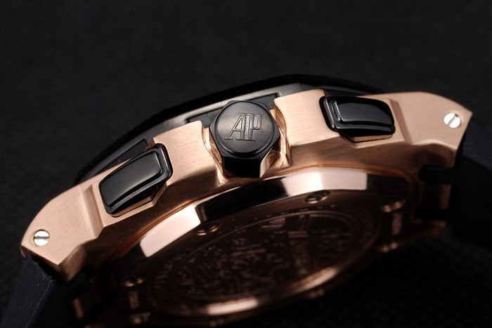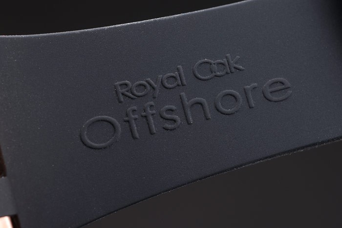 Armbånd: Sort Gummi Rem med varme Prægede Audemarer Piguet Royal Oak Offshore Stempel og et Audemars Piguet Indskrevet ionbelagt krogstrømning Clasp