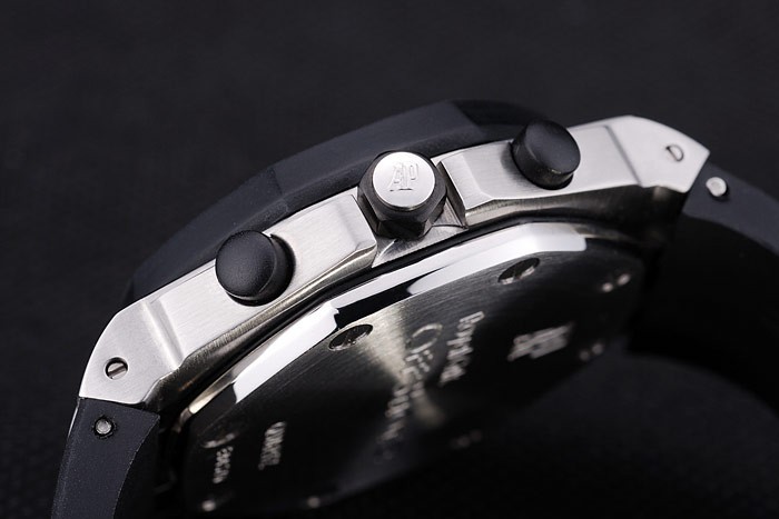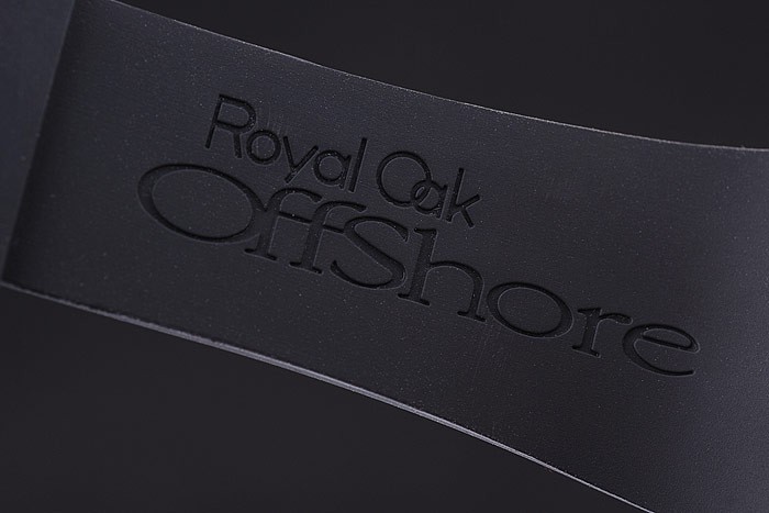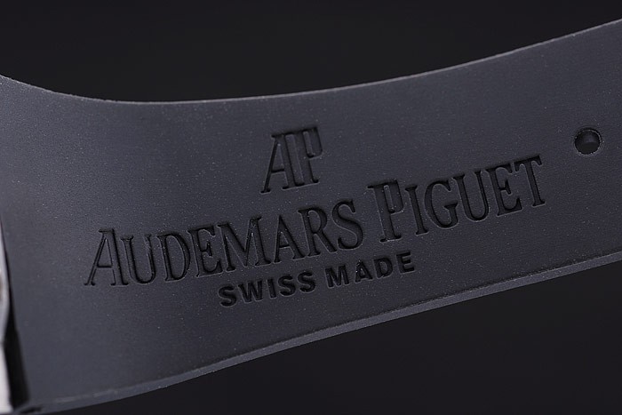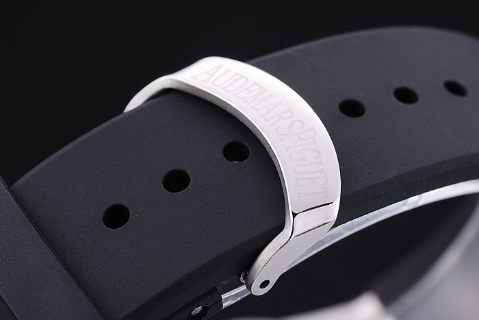 Armbånd: Sort Gummibånd med varmeprægede Audemars Piguet Royal Oak Offshore Stempel og et Audemars Piguet Indskrevet rustfrit stål Flip-over kroge lås