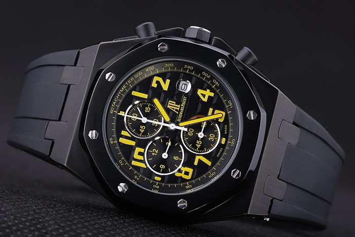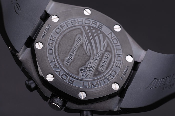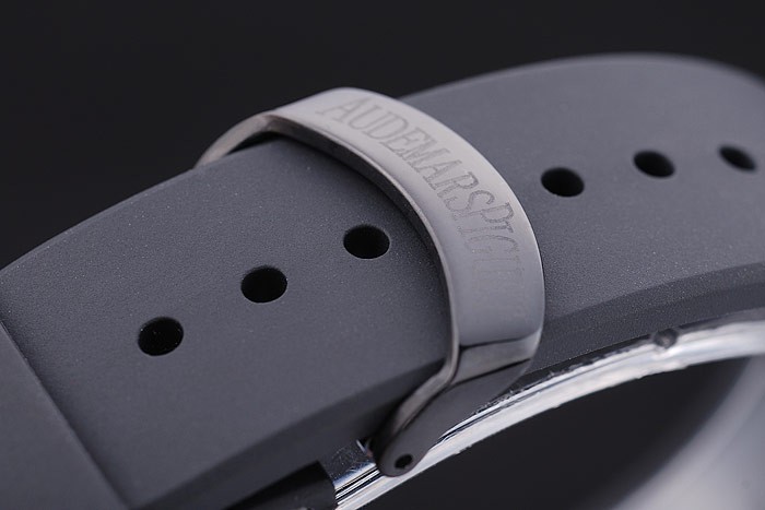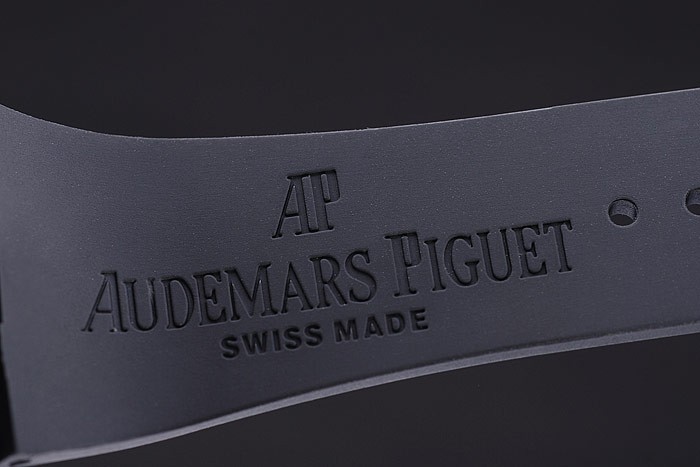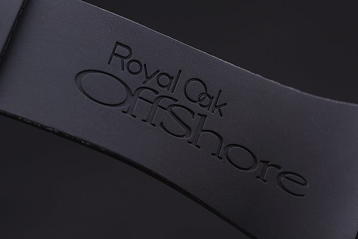 armbånd: sort gummirem med varmeprægede audemars Piguet Royal Oak Offshore Stempel og et Audemars Piguet Indskrevet ionbelagt krogstrømning Clasp