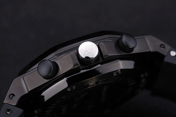 Crown: Rustfrit stål Audemars Piguet logo indgraveret ionbelagt cutwork krone med to små ion- belagt kroner på begge sider af det