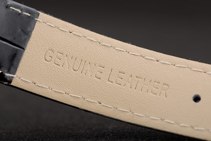 Armbånd: Sort Crocodile Læderrem med varmeprægede stempel Chopard og Chopard Indgraveret Rustfrit Stål Hook-Buckle Clasp