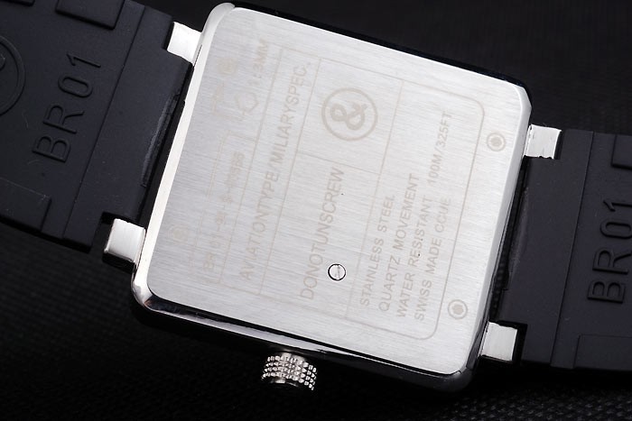 Tilbage: Børstet rustfrit stål skruet ned tilbage med Bell & Ross Inscriptions