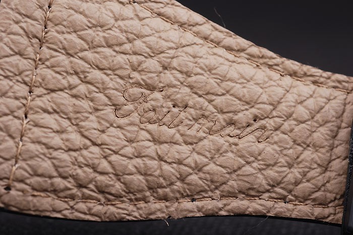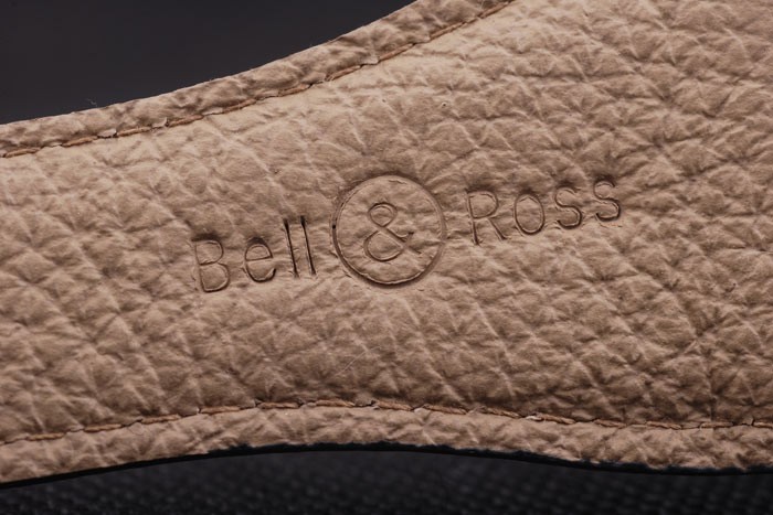 armbånd: sort læderrem med varmeprægede frimærke og bell & ross BR indgraveret ionbelagt krog-spænde lås