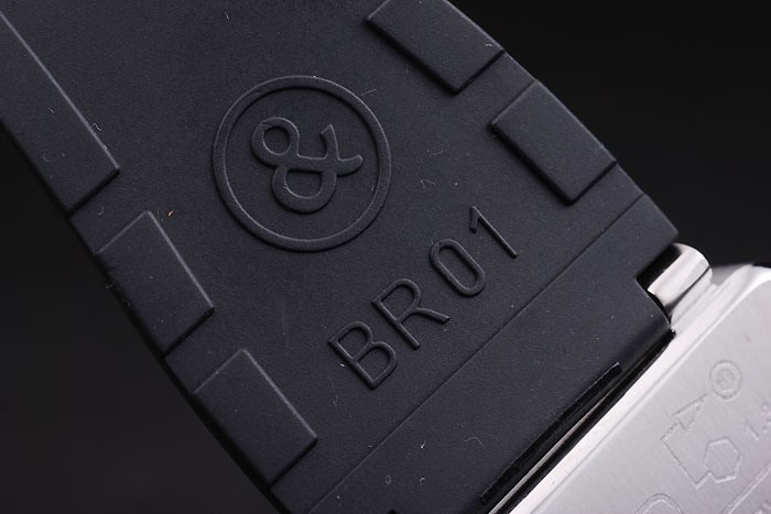 Crown: Rustfrit stål Cutwork Crown med Bell & Ross logo og en firkantet krone på hver side af hovedkronen