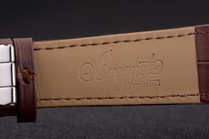 armbånd: Breguet varme præget brun krokodille læderrem med indgraveret brænde poleret rustfrit stål fold-in kroge spænde lås