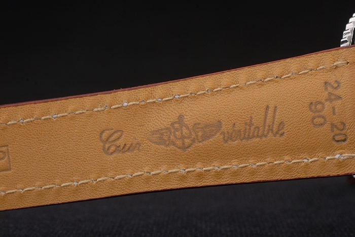 Armbånd: Breitling Varme Præget brun krokodille læderrem med hvid trådsting og logo indgraveret poleret rustfrit stål fold-in lås