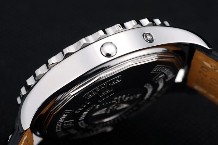 Dette ur har glas glas. Ansigtsfarven vises forskellige farver afhængigt af, hvordan lyset falder på itback: Poleret rustfrit stål Snap-in Tilbage med Breitling Engravings