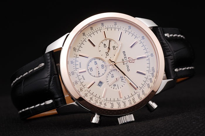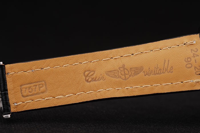 Armbånd: Varmekræftet Breitling Black Crocodile Læderrem med hvid trådsting og en Breitling logo indgraveret fold-in Stainless Clasp