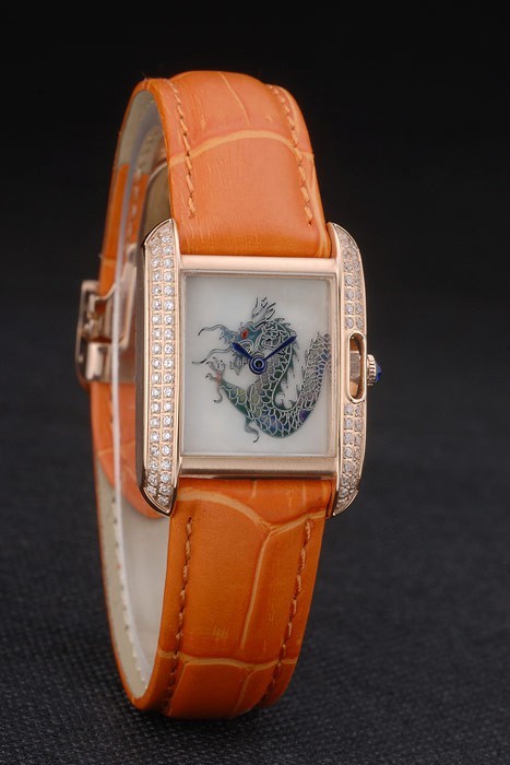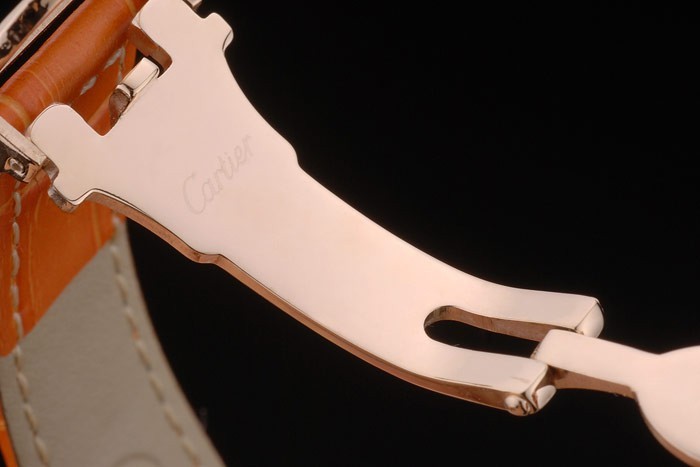 Armbånd : Cartier Heat Embossed Orange Crocodile Læderrem med 18k Rose-Gold Plated Fold-In Clasp Buckle