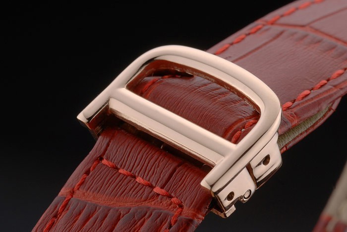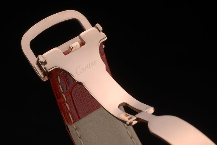 Armbånd : Cartier Heat Embossed Red Crocodile Læderrem med 18k Rose-forgyldt Fold-In Clasp Buckle