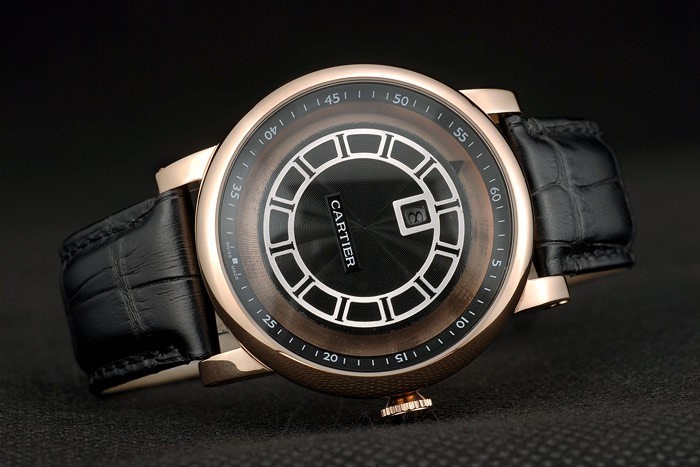 Tilbage: Poleret rustfrit stål skruet ned med gennemsigtigt center og Cartier graveringer