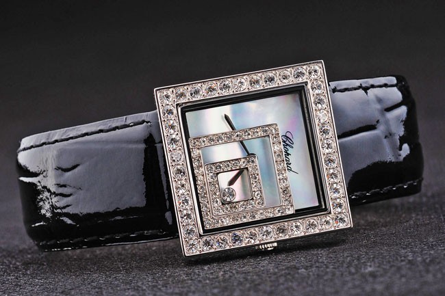 Med flydende firkanter af faux diamanter, er denne Chopard Replica Watch sikker på at få dig til at bemærke: Skub i rustfrit stål tilbage med Chopard Gravings