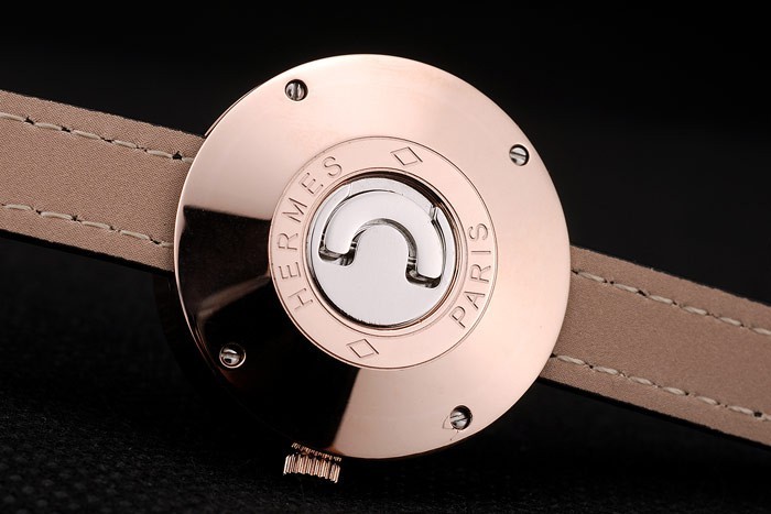 Tilbage: Rose-forguld belagt skruet ned tilbage med rustfrit stålcenter og hermes paris gravering