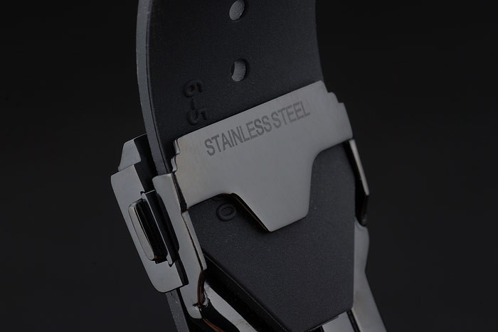 Armbånd : Hublot Geneve Heat Præget ribbet Sort Gummirem med Hublot Geneve Graveret ionbelagt skubbe frigivelseskrog Clasp