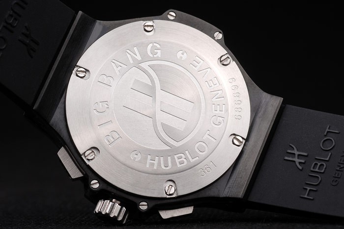 Tilbage: Rustfrit stål skruet ned tilbage med Hublot-påskrifter