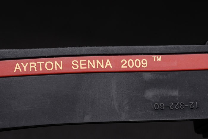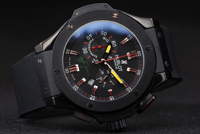 Armbånd: Textured Black Rubber Band med ionplettet trykknap Hook Clasp, Varmeprægede gravering og Hublot Ayrton Senna i 2009 Indskrifter