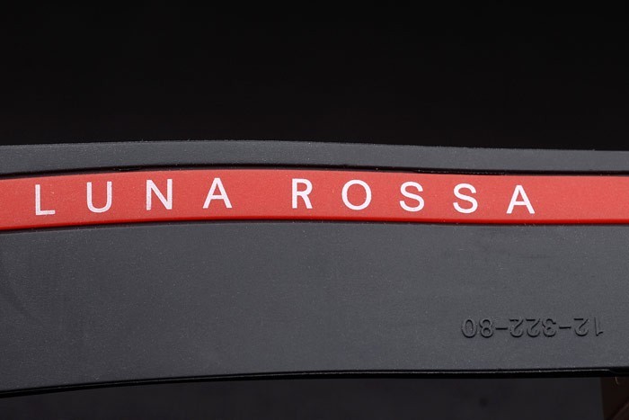 Armbånd: Tekstureret sort gummibånd med ionplettet trykknap Kroge lås, varme præget rød månegravering og hublotindskrifter