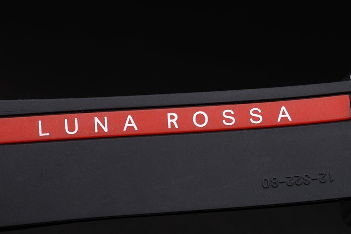 Armbånd: Tekstureret sort gummibånd med rustfrit stål trykknap kroge lås, varme præget rød måne gravering og hublot påskrifter