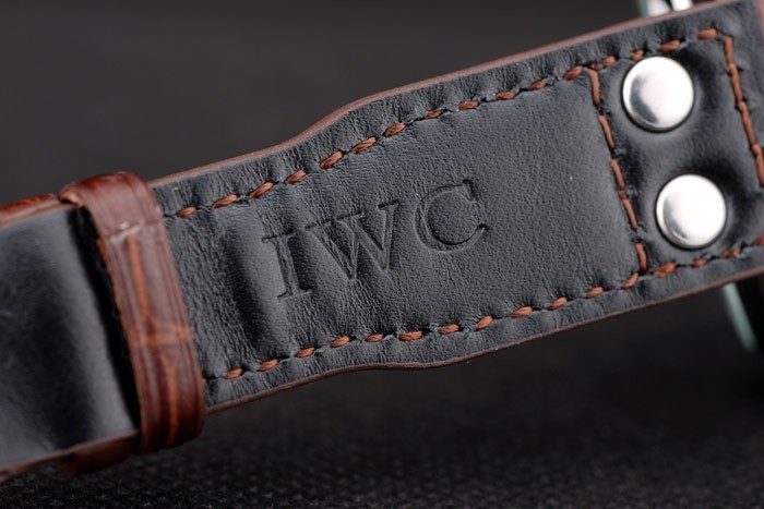 Armbånd: IWC Varme Præget brun krokodille læderrem med IWC indgraveret børstet rustfrit stål Hook-Buckle Clasp