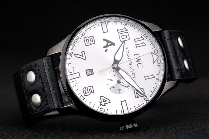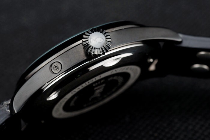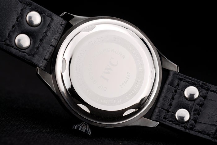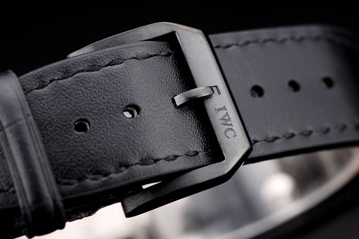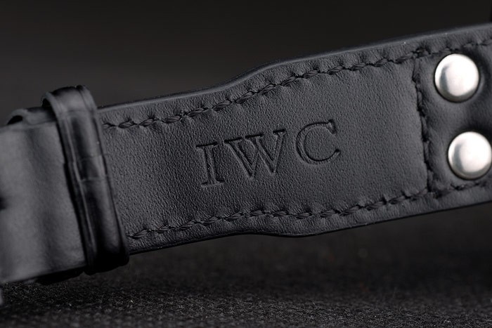 Armbånd: IWC varme præget sort krokodille læderrem med IWC indgraveret ionbelagt rustfrit stål Hook-Clasp