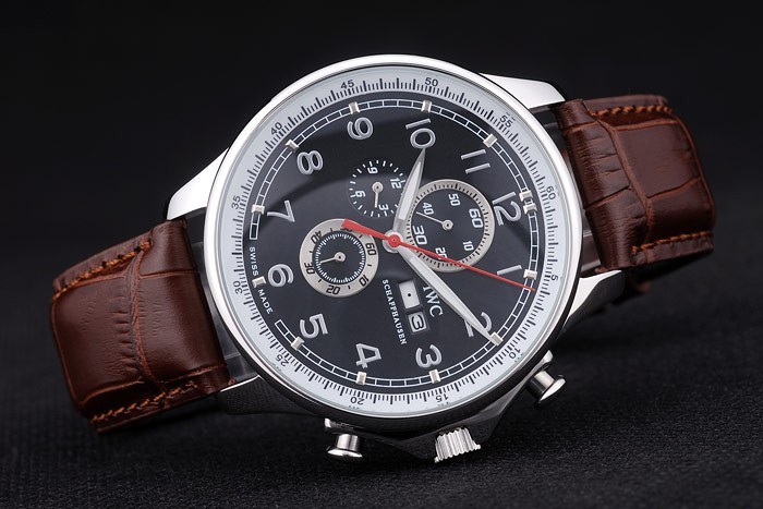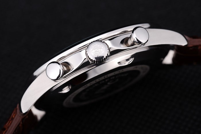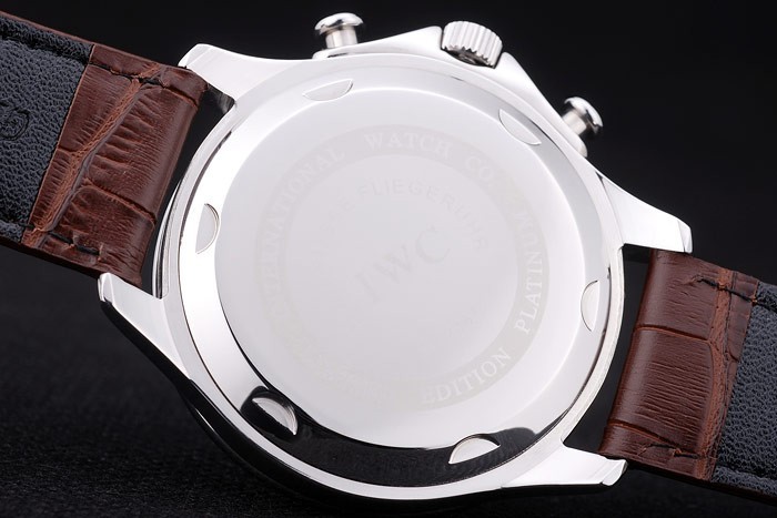 Crown: Poleret rustfrit stål cutwork krone med IWC logo gravering og to mindre runde push-knap krone på begge sider af det