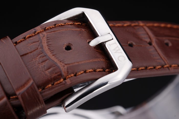 Armbånd: IWC Schaffhausen Varmeprægede Brun Krokodille Læderrem med IWC Indskrevet rustfrit stål Hook-Buckle Clasp