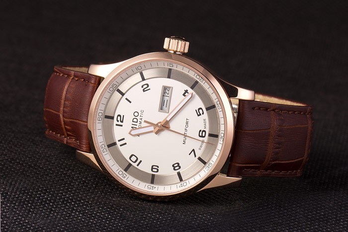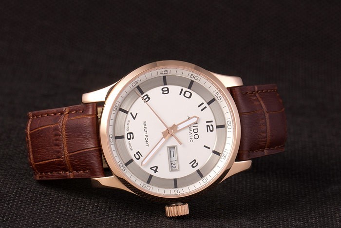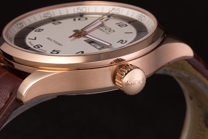 Mido Multifort Brun Croco Læderrem Hvid-Silver Dial 80300