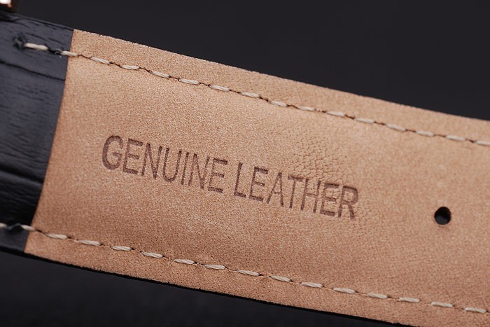 Armbånd: Varmeprægede Montblanc Black Crocodile Læderrem med Montblanc Navn og logo indgraveret Rose-Gold Flip-Over Hook Clasp
