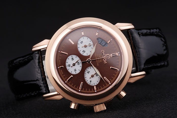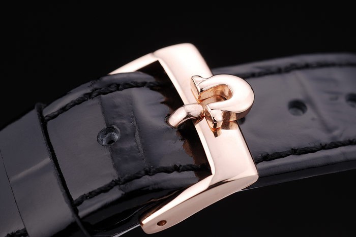 Armbånd: Patent Brown Snake Læderrem med varme Prægede Omega Stempel og tykt fremhævet Hook-Omega Logo Rose-Gold Buckle Clasp