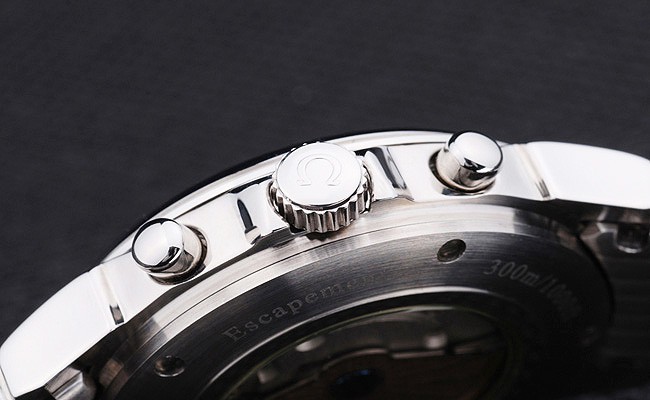 Crown: Poleret rustfrit stål cutwork krone med omega logo plus to ekstra kroner, en på begge sider af det