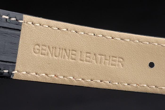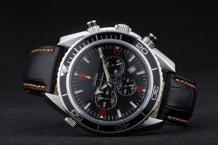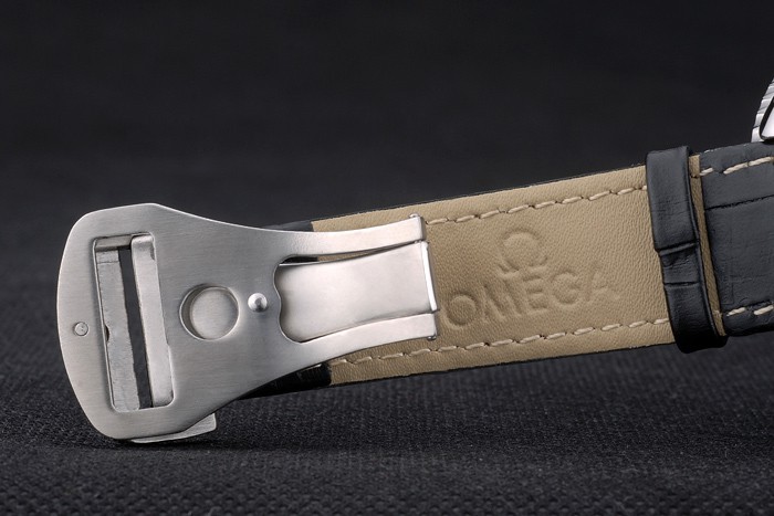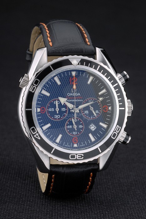 armbånd: orange syet sort læderrem med varmeprægede omega stempel og poleret rustfrit stål fold-in lås med omega logo på toppen
