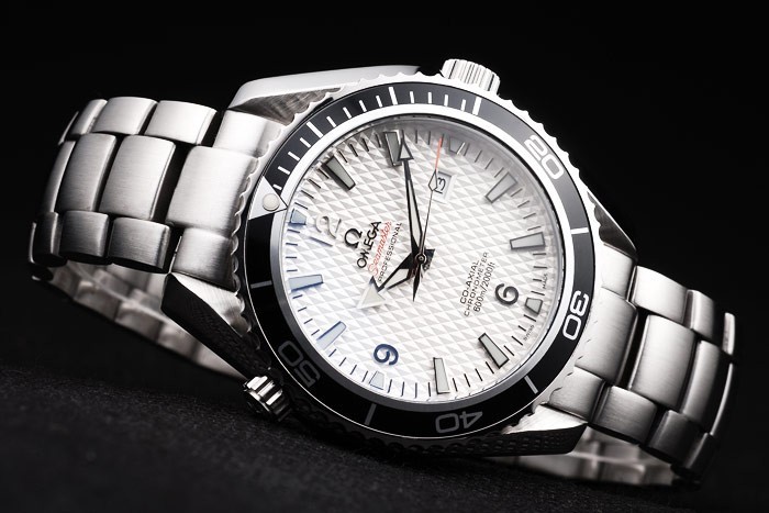 Crown: Børstet rustfrit stål cutwork krone med omega logo plus en ekstra krone på det modsatte øverste hjørne