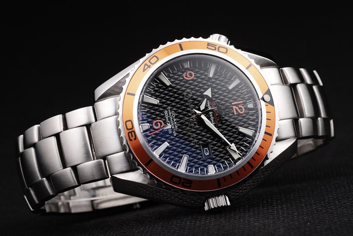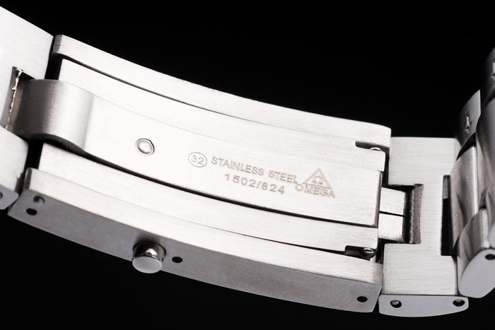 Crown: Børstet rustfrit stål cutwork krone med omega logo plus en ekstra krone på det modsatte øverste hjørne