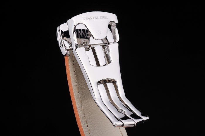Crown: Poleret rustfrit stål Cutwork Crown med Omega Logo plus en anden lignende krone på det modsatte øverste hjørne