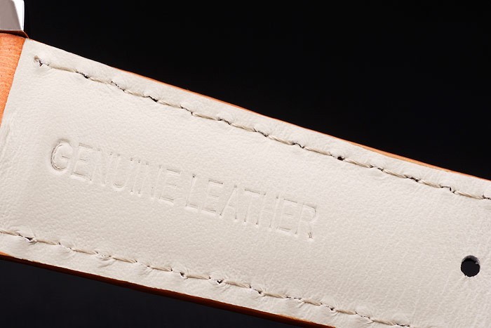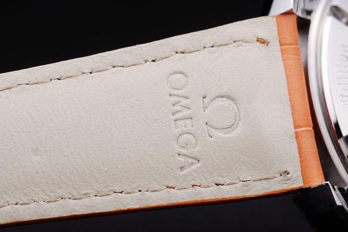 Armbånd: Varmekræftet Omega Navn og logo Orange Crocodile Læderrem med omega logo indgraveret poleret rustfrit stål Fold -in Flip Clasp