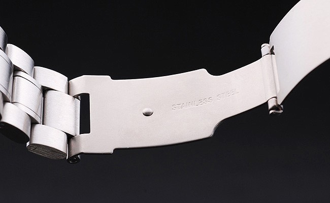 Armbånd: Børstet og Poleret rustfrit stål link armbånd med omega graveringer trykknap frigivelse implementering lås