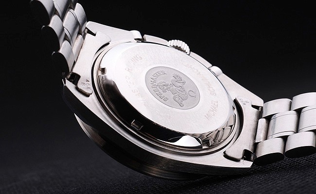 Tilbage: Rustfrit stål Push-In Case tilbage med Omega Inscriptions